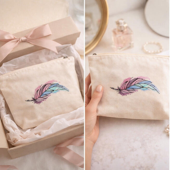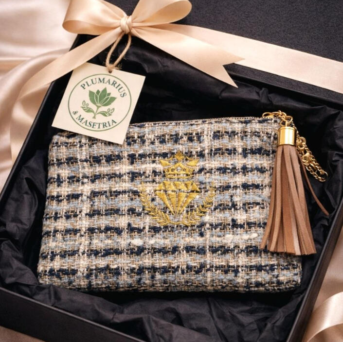 ✨ Pochette brodée – idée cadeau élégantePochette raffinée avec broderie dorée, présentée en coffret cadeau.