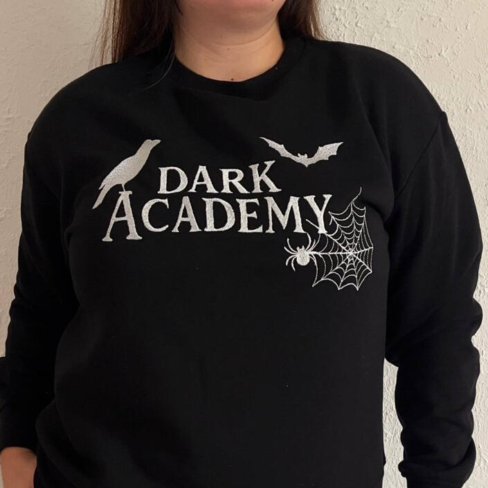 🖤 Sweat brodé – Dark AcademySweat noir avec broderie style gothique (corbeau, chauve-souris, toile).